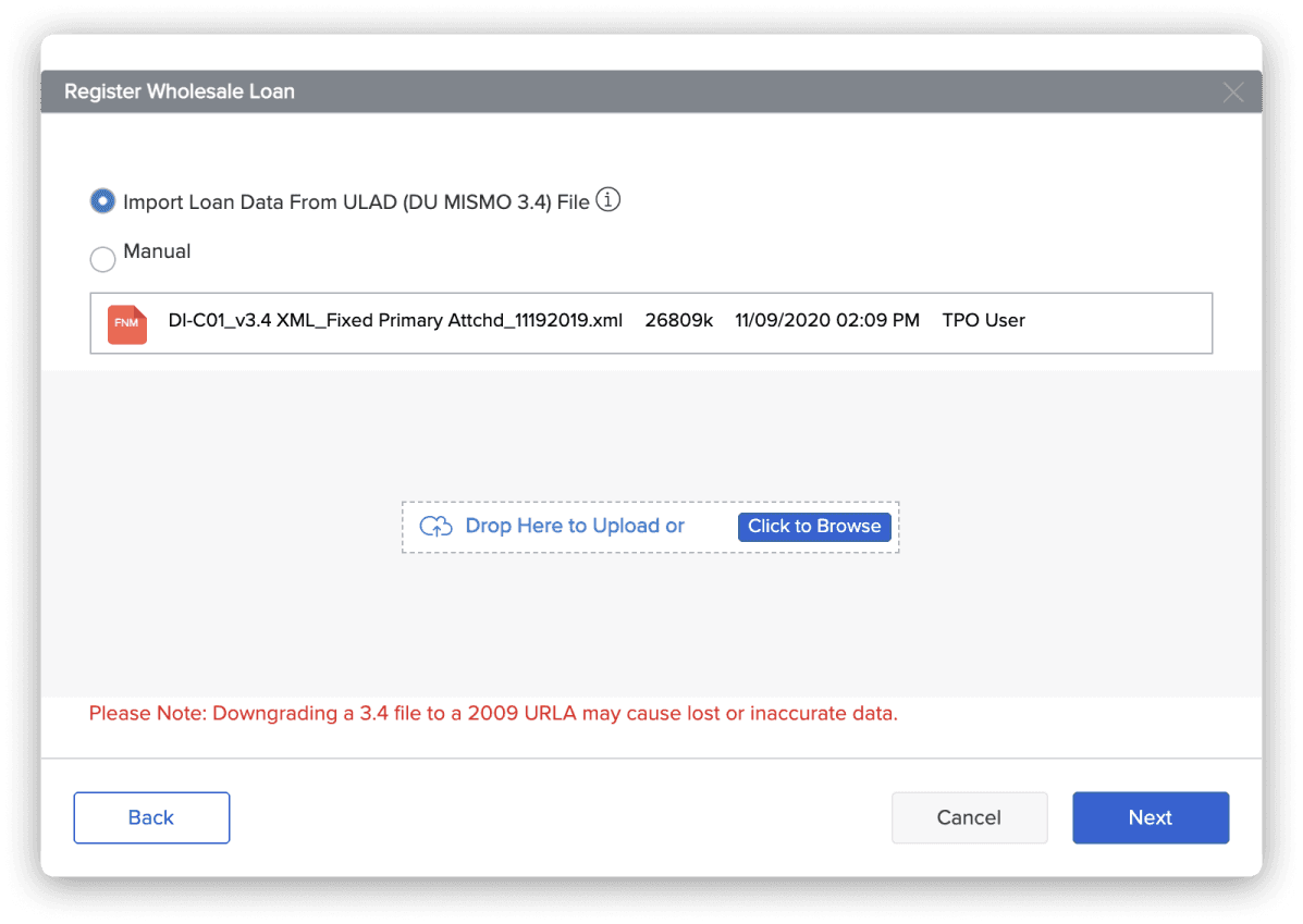 The initial concept was a sort of “guided workflow” idea. A user can populate the guided form with data from an uploaded file, or enter in the required information manually. This was to streamline the process of the loan creation in simplified, sequential steps that would be dynamic depending on some conditional logic. This could keep the user focused on what steps are needed and only present them with prompts to fill out when they are needed. This also helps make sure that all the required data is gathered, as well as minimizing validation errors.